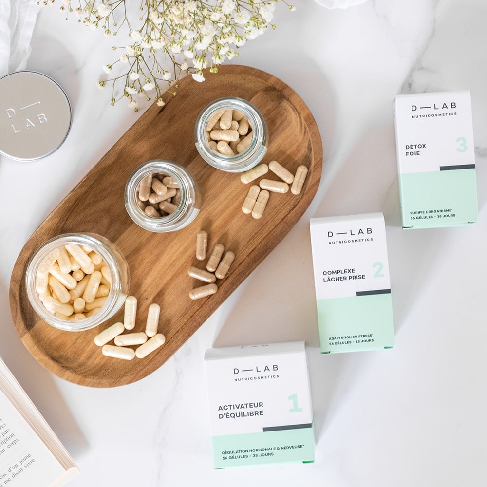 Los complementos alimenticios para el estrés, la energía y la fatiga de D-LAB son una respuesta natural para paliar las molestias del estrés diario. Gracias a ingredientes naturales cuidadosamente seleccionados por su eficacia, estos complementos alimenticios pueden ayudar a mejorar la calidad del sueño, aumentar la energía y la vitalidad, apoyar la salud mental y emocional, y fortalecer el sistema inmunitario. Paralelamente, pueden contribuir a desintoxicar el cuerpo, optimizando así el bienestar general. Fabricados en Francia, estos complementos alimenticios respetan normas de calidad estrictas para garantizarle seguridad y eficacia óptimas.