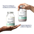 Este ritual asocia Pro-Colágeno Flexibilidad y Pro-Colágeno Digestión para restaurar el confort del cuerpo a diario. Gracias a un Colágeno Marino patentado, a la Elastina y a la Garra del Diablo, el Pro-Colágeno Flexibilidad refuerza la estructura del cartílago y mejora la movilidad articular. Paralelamente, la Vitamina C contribuye a la formación natural de colágeno para unas articulaciones flexibles, estables y duraderas.
