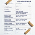 La combinación de vitamina C, L-tirosina y complejo de vitaminas B optimiza las funciones intelectuales, estimula la memoria y favorece la concentración. Estos micronutrientes esenciales apoyan la reducción de la fatiga y el mantenimiento del funcionamiento normal del sistema nervioso. El origen de la vitamina C y las vitaminas B garantiza una excelente asimilación.