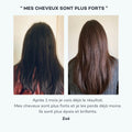 Los extractos de rúcula y de cola de caballo titulada en sílice dinamizan la microcirculación del cuero cabelludo, estimulando así el aporte de nutrientes esenciales a los folículos pilosos. Combinados con la espirulina, la clorela y el litotamnio, ricos en proteínas y minerales, favorecen la producción natural de queratina y nutren intensamente la fibra capilar desde la raíz. Esta sinergia de activos potentes crea un ambiente óptimo para un crecimiento más rápido y un cabello visiblemente más fuerte.