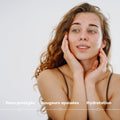 Rosa Centifolia y pensamiento silvestre (Viola tricolor), preparados en Francia, contribuyen a la hidratación y tonicidad de la piel. La cola de caballo (Equisetum arvense) titulada en sílice mejora la estructura cutánea. Centella asiatica (Hydrocotyle) y la coenzima Q10 encapsulada estimulan la regeneración celular. El zinc microencapsulado y la vitamina B6 completan esta sinergia regulando el pH cutáneo y protegiendo la piel de las imperfecciones.