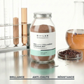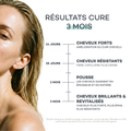La queratina es la proteína principal que constituye el cabello, tiene la capacidad de fortalecer su estructura y favorecer su crecimiento. Nuestra fórmula utiliza una queratina Premium de origen natural cuya eficacia está comprobada por un estudio clínico², sobre la anti-caída, la mejora del crecimiento, la estructura y el brillo del cabello. El colágeno es una proteína presente de forma natural en nuestra dermis. Su producción disminuye a partir de los 25 años. Permite, entre otras cosas, aumentar la producción de queratina aportando aminoácidos, como la glicina o la prolina, que se utilizarán para su síntesis. Los beneficios de nuestro colágeno han sido probados por estudio clínico1 tras una prueba en 60 personas durante 60 días.