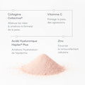 Su acción se potencia con la adición de vitamina C que permite el aumento de la producción endógena de colágeno.