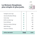 Le Pro-Collagène Souplesse contiene 185,2 g de polvo en un frasco de vidrio de 500 mL para una duración de tratamiento de 28 días.